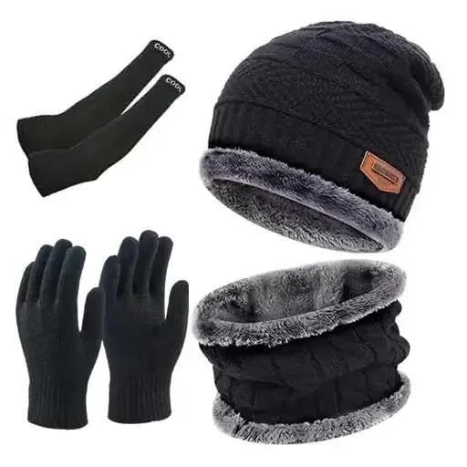 BUY FOR HAPPINESS Winter Warm Set – Black Cap, Gloves, Sleeves, and Socks | Coz