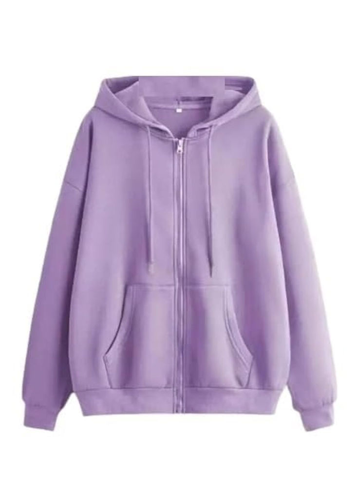 Casual Solid Full Sleeves Women Stylish Hooded Neck Fleece Zipper Hoodie for Wi