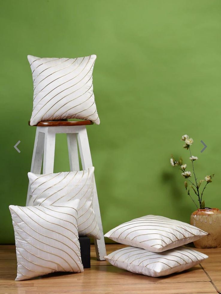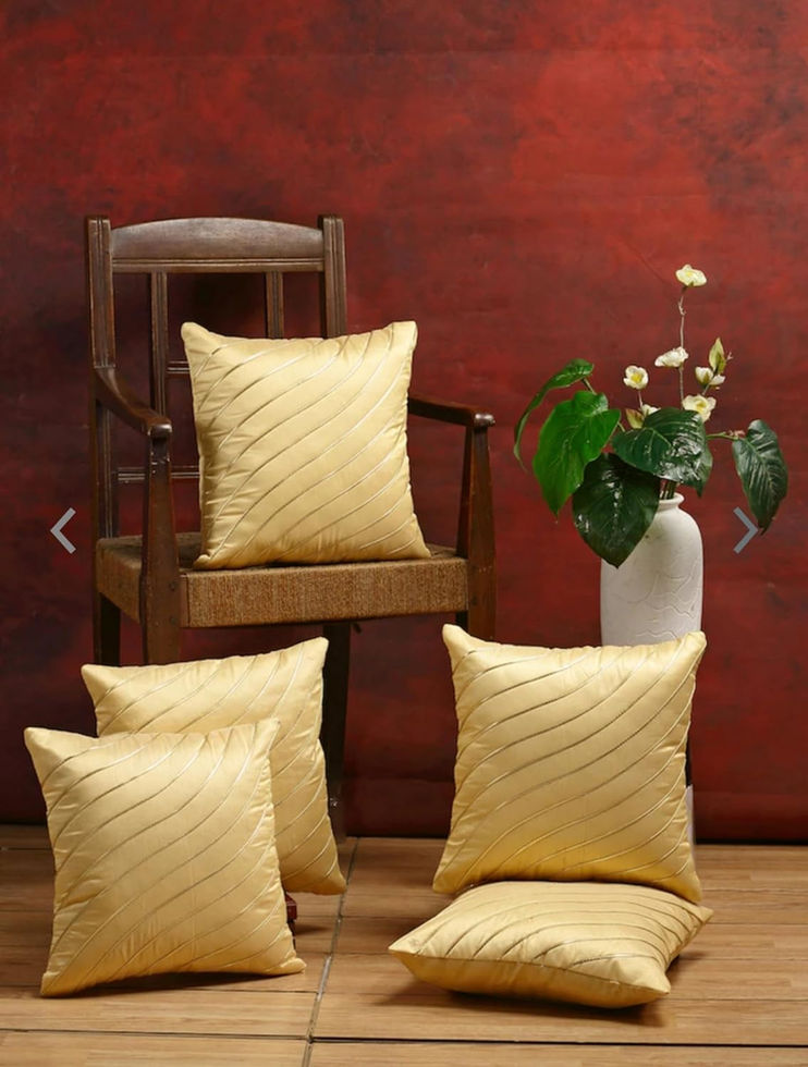 HOMEECART Set of 5 Decorative Hand Made Golden LINE Design Throw/Pillow Cushion