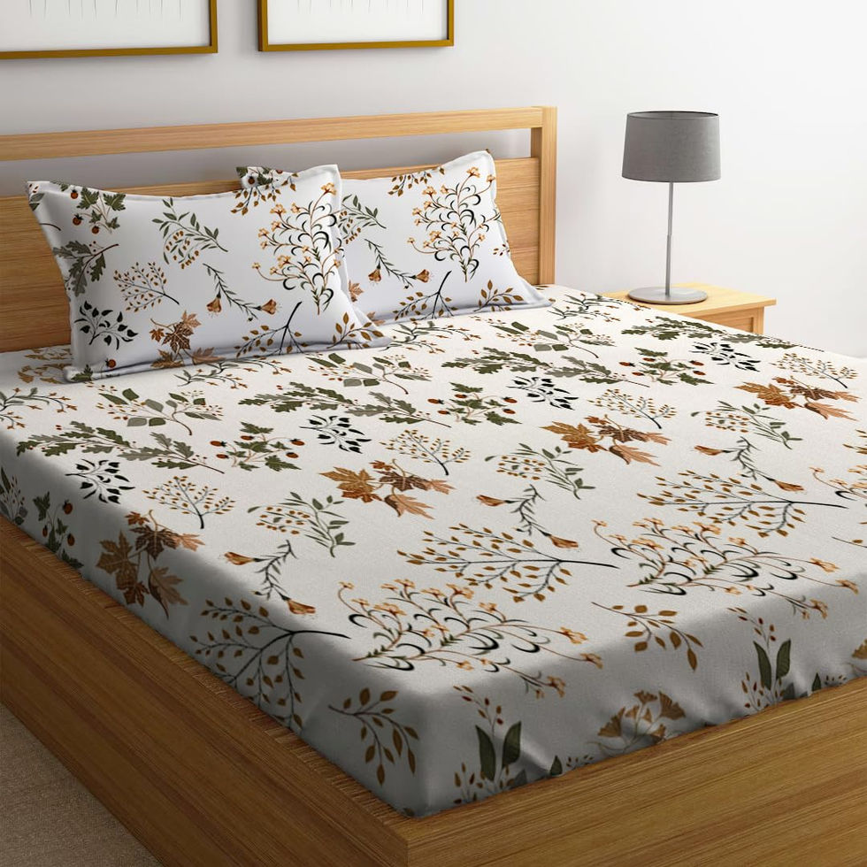LOOMLYFE 300 TC Cotton Feel Glace Cotton Elastic Fitted Printed King Size Doubl