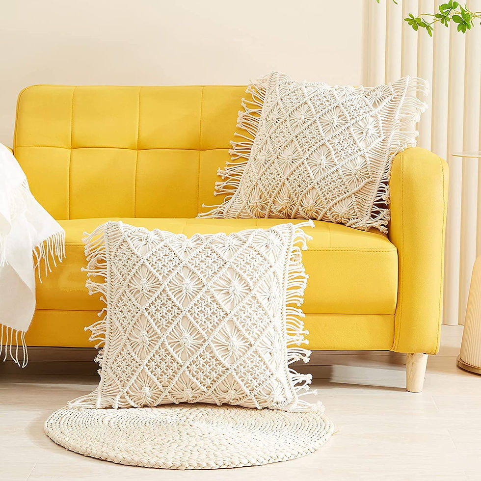 Macrame Cushion Cover 16 x 16 inch Handmade Soft Boho Cotton Pillow Case for So