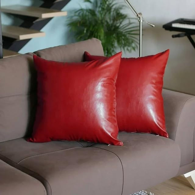 Colour: Pack of 2 Faux Leather Pillow Cover (Brown)
