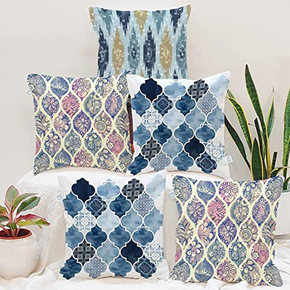 STITCHNEST Set of 5 Polycotton Cushion Covers – 18x18 Inches – Multicolor Boho