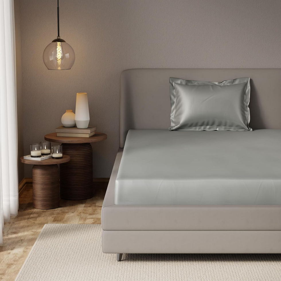 Elevate Your Bedroom Vibe: Understated yet elegant, this double bed elastic fitted bedsheet in Harbour Mist Grey brings a calming, contemporary edge to your space. Crafted with 300TC UltraSatin, it offers a silky sheen that complements modern interiors, ideal for refined aesthetic home decor.