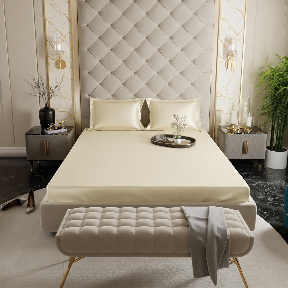 Effortless to Maintain: This double bedsheet with an elastic fit feature is as easy to care for as it is beautiful. UltraSatin is wrinkle-resistant, quick-drying, and machine-washable, giving you everyday luxury without the upkeep. Perfect for a fuss-free aesthetic home decor upgrade.