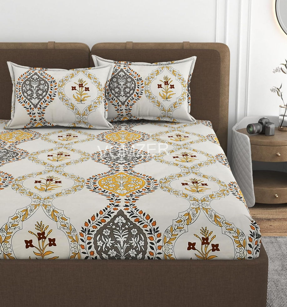 VOMZER 320 TC Cotton Feel All Around Elastic Fitted Floral Bedsheets King Size,